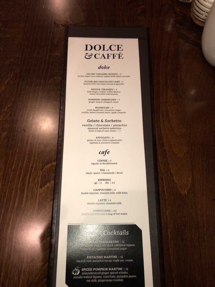 espresso soaked lady fingers, whipped mascarpone, frangelico, cocoa.